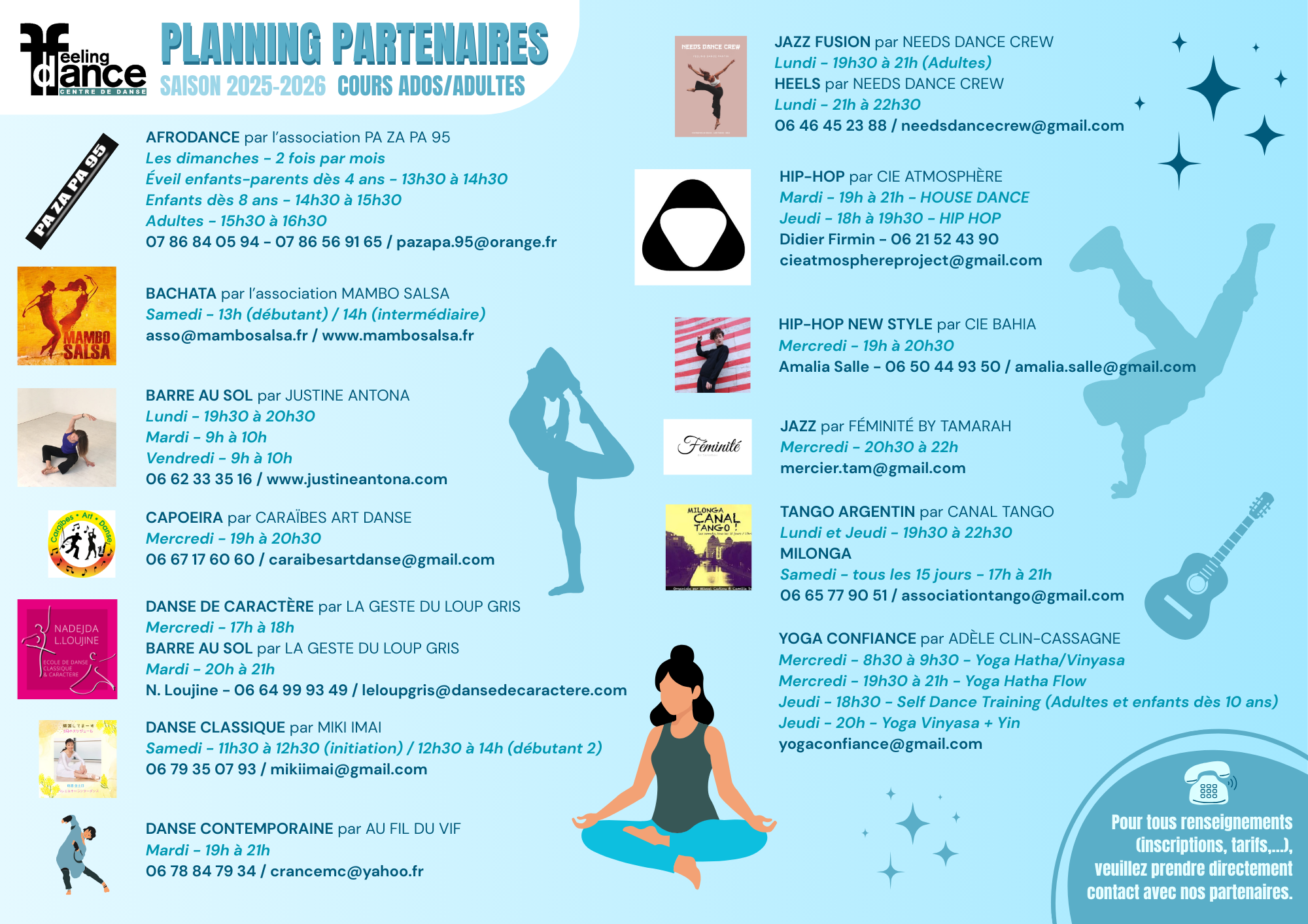 Note : Pour tous renseignements (inscriptions, tarifs,…), veuillez prendre directement contact avec nos partenaires.